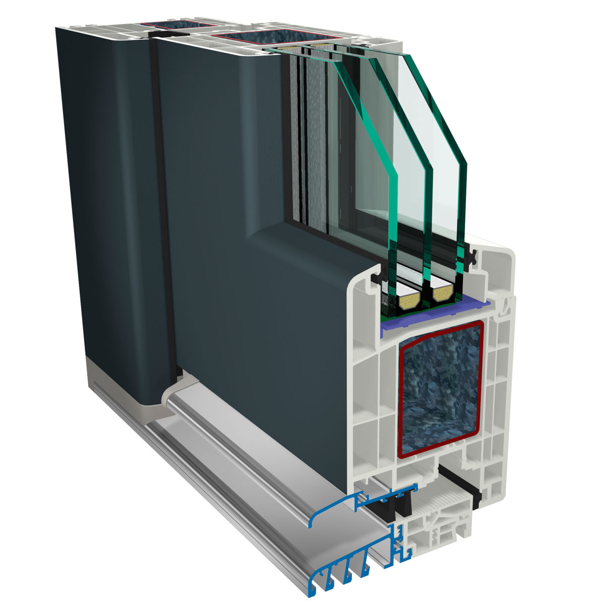 - 74 mm vastag 7 kamrás tok és 4 kamrás szárny profilokkal készül,
