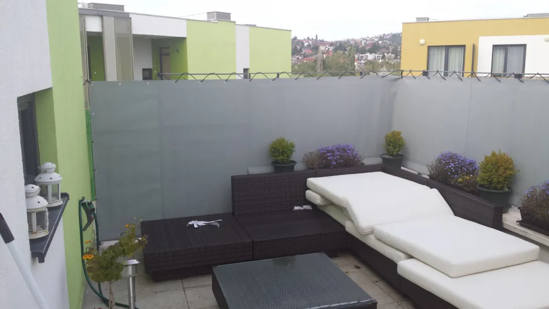 Referencia helyszín Budapest Siófok Terasz árnyékolás, védelem az időjárással szemben. A terasz árnyékolása megfoghatja a szelet, a port és belátás ellen is védelmet biztosít. Lényegesen növeli a komfortérzetet, növeli a teraszon eltölthető idő mennyiségét.